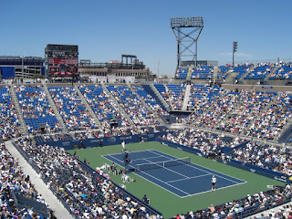 Haas dagegen (2. Bild oben, im Hintergrund Shea Stadium der New York Mets und der Neubau, das Citi Field für 850000000 $) hatte mehr Lust zu spielen: 5 Sätze gegen Gasquet. Wie bei Grönefeld (gegen Hantuchova! S. Bild) hat es aber zu einem Sieg gereicht. Der sterbende Schwan im ersten Bild ist übrigens Roddick. Wenn man nicht gerade einen bestimmten Spieler sehen will, sondern einfach gutes Tennis, reichen Ground Tickets. Das hat auch den Vorteil, dass man sich Roddick und die Williams-Schwestern erspart. Von den Dollars ganz zu schweigen. Die braucht man nämlich für die 8.50 $-Wurst mit "Sauerkraut".