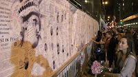 Besser war die Stimmung auch nicht an Ground Zero, an den ich danach gefahren bin. Man sieht immer noch Fragezeichen in den Gesichtern (noch mehr als im Bild rechts). Wenn man zwischen all diesen Leuten steht (und das sind unglaublich viele), die um ihre Angehörigen trauern, nimmt einen das doch etwas mit.