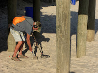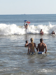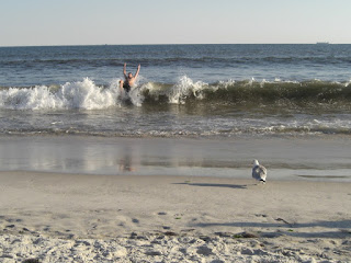 Heute hat mich der Long Beach gerufen und ich bin natürlich in Richtung Hamptons gefolgt. Um zu lernen. Zwar wurde hier im Gegensatz zu Coney Island nicht der Hot Dog erfunden (schon gar nicht von einem Deutschen), auch wird nicht auf Menschen geschossen (Shoot the Freak), dafür aber mit Bällen. Die nationalen Meisterschaften im Beachtennis (sic!) fanden gerade statt. D.h., eine Rockband spielte neben dem Platz, ein Tennisballmaskottchen rannte über den Platz und Cheerleader tanzten auf dem Platz. Einen Ball durfte ich als Souvenir mit nach Hause nehmen, die wurden ins Publikum geschossen. Wie schön.
