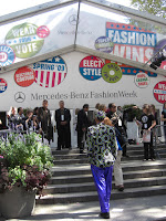Die Fashion Week Spring 2009 (ja, die sind hier alle ihrer Zeit voraus) ist eines der vier wichtigsten Fashion Events der Welt. Der genaue Platz ist mir nicht bekannt, es dürfte der 1., 2., 3. und 4. sein nach dem Auflauf dort. Wobei an sich New York der einzige Ort ist, an dem die ganzen Fashionistas nicht auffallen. Hier ist jede Woche Fashion Week. Im Bryant Park als After-Work-Treff von Midtown mit vielen Kino-Abenden im Sommer ohnehin.