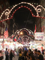 Nach einem harten Tag habe ich beschlossen, mir noch ein Abendessen auf dem größten und ältesten religiösen Fest im italienischen Teil von New York, eine u-Bahn-Station Richtung Manhattan, verdient zu haben. Los ging es in Richtung Little Italy, ausgestiegen bin ich aber zunächst mit 200 Chinesen. Chinatown liegt nämlich direkt nebenan und droht Little Italy zu unterwandern. Also bin ich erst noch durch Chinatown gebummelt. Die Wall of Democracy, auf der Zeitungsausschnitte über die Menschenrechtssituation in China aufgehängt wurden, scheint aber abgeschafft worden zu sein... Der Tempel mit den über 100 goldenen Buddhas hatte auch schon zu.