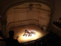 Eigentlich wollte er ja gar nichts sagen, diesmal. Hat er zumindest am Anfang gesagt. Als Anspielung auf seine gefürchteten Ausfälle gegen Blitzfotografen und chronische Hüstler. Ein kurzer Einwurf zum Energieproblem (wohl zum Stichwort "Clean Coal", das hier Obama und McCain so gerne benutzen - saubere Kohle klingt mehr nach schwarzer Schimmel für mich, aber ok). Das war es dann auch schon fast, bis auf eine kurze Tirade, warum in Zeiten der Weltwirtschaftskrise Leute überhaupt noch Digicams und Handys kaufen würden. Zwischendurch schreitet er hinter dem Piano wie Beckenbauer 1990 nach dem Endspiel.