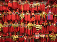 In den Läden selbst gibt es die größte Auswahl an Sachen, die die Welt nicht braucht. Meiner Ansicht nach auch die fernöstliche Welt nicht. Die "Dinger" in Foto (1) werden ins Haus, Auto oder sonstwohin gehängt, um Glück zu bringen. Leider konnte ich in den wirklich spannenden Läden nicht fotografieren, bei Anblick einer Digicam wurde gleich sehr deutlich gemacht, dass keine Fotos erlaubt sind. Ich kann mir auch denken, warum. Meistens findet sich die Beschriftung in englisch und chinesisch, je mehr die getrockneten Bestandteile der Gläser (2) jedoch nach Artenschutz aussehen, umso seltener findet sich eine englische Beschriftung. Es finden sich auch Süßigkeitenläden (3), die gezuckerte Haiflossen verkaufen.