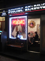 Noch spannender ist eigentlich die Gegend von Chinatown, in der das Rot in Dunkelschwarz übergeht. Allerdings werden hier selten Fotos (1, versteht jemand die Schilder?) gemacht, noch seltener kommt man wieder mit der Digicam nach draußen. Da hilft dann nur noch, sich ein wenig Gleichmut im buddhistischen Tempel (2, war Buddha wirklich ein feist grinsender Fettsack?) anzueignen. Oder einfach die Wahrsagerin um Rat fragen (3, praktischerweise direkt mit Geldautomat links).