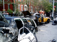 Sein Haus am Washington Square Bogen (rechts Foto von Terry Ballard, links in der Straße ist meine Uni) liegt keine 2 Minuten von ihr entfernt, ich esse dort öfters. In die St. Patrick's Cathedral gehe ich gerne mal kurz, wenn Midtown mal wieder zu laut dröhnt. Und die Rückblende, in der die Einwohner New Yorks evakuiert werden, spielt an meinem Lieblingsplatz unter der Brooklyn Bridge. Fotos vom Filmen dort kann man bei Flickr anschauen. Die Szene dort mit National Guard, Panzern, Humvees, Hubschraubern etc. ist mit 5 Mio. $ die teuerste jemals gedrehte.Aber schon aus einem anderen Grund wird etwas Vergleichbares nie wieder gedreht werden. Kein Mensch (der wiedergewählt werden will) wird noch einmal erlauben, das halb New York stillgelegt wird. Will Smith jedenfalls hat "noch nie in [seiner] Karriere so viele Mittelfinger gesehen"...