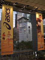 Es wird bereits Werbung für den New York Marathon gemacht (nicht die Frau im Vordergrund, der Mann dahinter), sehr schön auch die Aussicht (wieder nicht die Frau im Vordergrund, die Hochhäuser im Hintergrund). Letztes Jahr ging die Route direkt an meiner Wohnung vorbei.