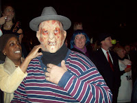 Hier noch ein paar Fotos von P., dem Inder. Zu mehr werde ich die Tage nicht kommen, durch Marathon, Wahl und Uni bleibt einfach keine Zeit. Rechts in der Mitte ist noch F. aus Frankreich zu sehen. Rechts P., links L. noch ohne Verkleidung, unten links mit Verkleidung. OK, ich hatte nur einen Hut für $5, aber der war immerhin fast einen Meter hoch und sah super aus. Hat mich größer gemacht.
