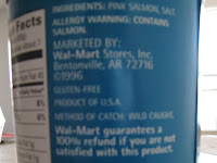 Hier zur Abwechslung mal eine Lesereinsendung! Mascha hat sich das Kleingedruckte ihrer Lachsdose mal genauer angeschaut. Sieht erstmal harmlos aus. Auf der Rückseite dann aber der Hinweis, dass in der Lachsdose Lachs drin ist. Das lieben wir so an den USA, vor Überraschungen ist man hier einfach nicht gefeit. Das wissen sie sogar selber und sammeln fleißig die